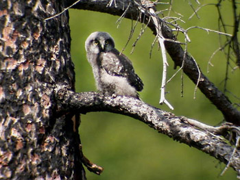 A Great Grey Owl (left) and a Northern Hawk Owl, both seen in Okanogan County. |