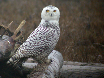 The piercing gaze of a Snowy Owl and a White-tailed Ptarmigan in winter plumage spotted near Hart's Pass. |