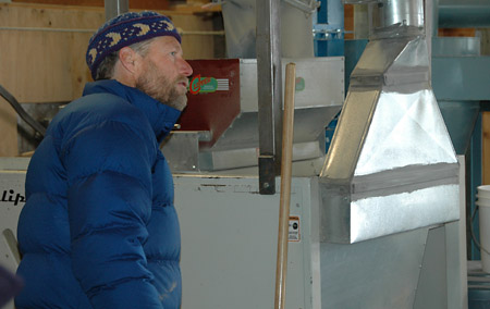 Walt Hagermeister runs most of the processing machines. "It's not as dusty as you might think, explained Sam, "but it does get noisy. We try to keep the flour outside. Flour dust is very explosive.”