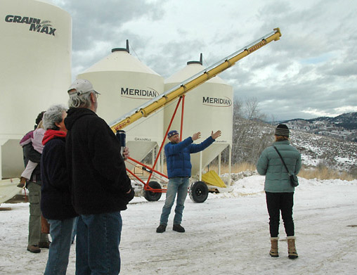 Brooke and Sam Lucy invited the public on a tour of their local farmstead recently, and talked to a well-bundled and appreciative audience about their farming, their grains, and their marketing.