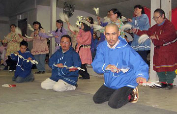 Native villagers drum and dance their stories. |