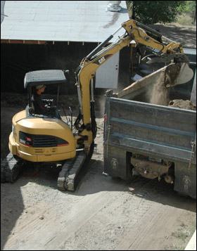 Robert Grim operates Doug Haase Excavating’s mini excavator clearing space for the brewery expansion.