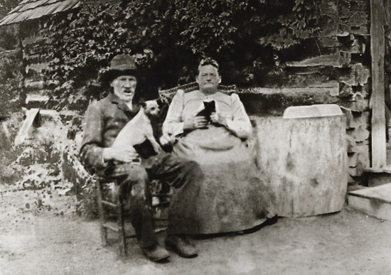 Jimmie and Louisia Sullivan sit outside their log home, which doubled as Winthrop's first hotel. “Mrs. Sullivan was noted for her good cooking, especially her preparations of bear meat, venison, grouse, and fish,” according to U.E. Fries, the mail carrier who boarded with the Sullivans when he stopped in town. Photo courtesy Shafer Museum