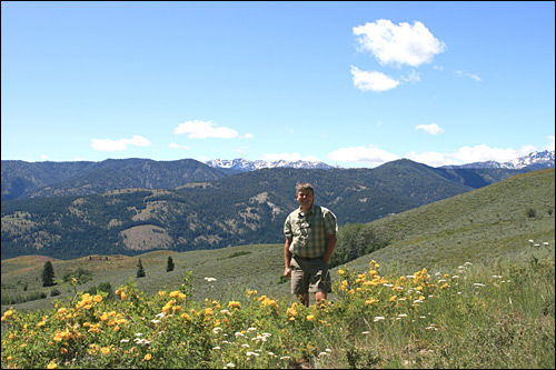 | Jason Paulsen, executive director of the Methow Conservancy, at the organization's 237-acre Owl Peak property up the Rendezvous, which is on the market for $950,000.