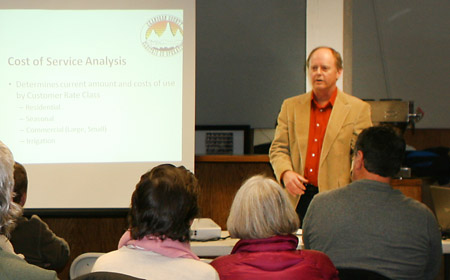 Gottula stressed to an audience of about 35 people that the utility was focusing on how to fairly apportion costs among users. He laid out the rate-setting schedule and said he wants to keep open communication with members during the process.